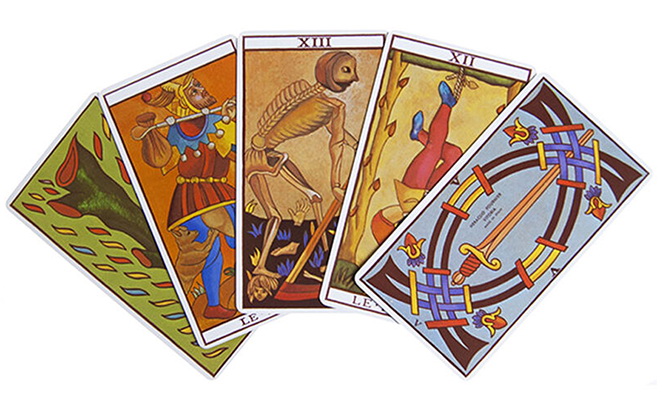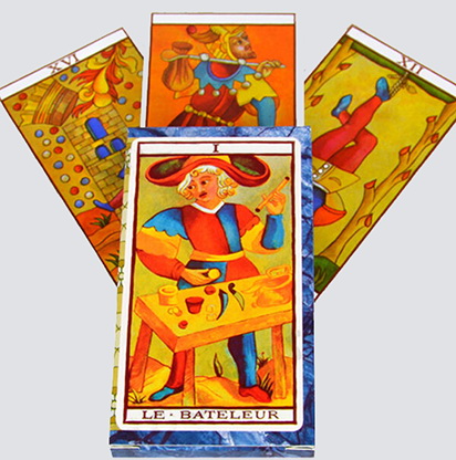 - Standard tarot-sized playing cards (60mm x 110mm)