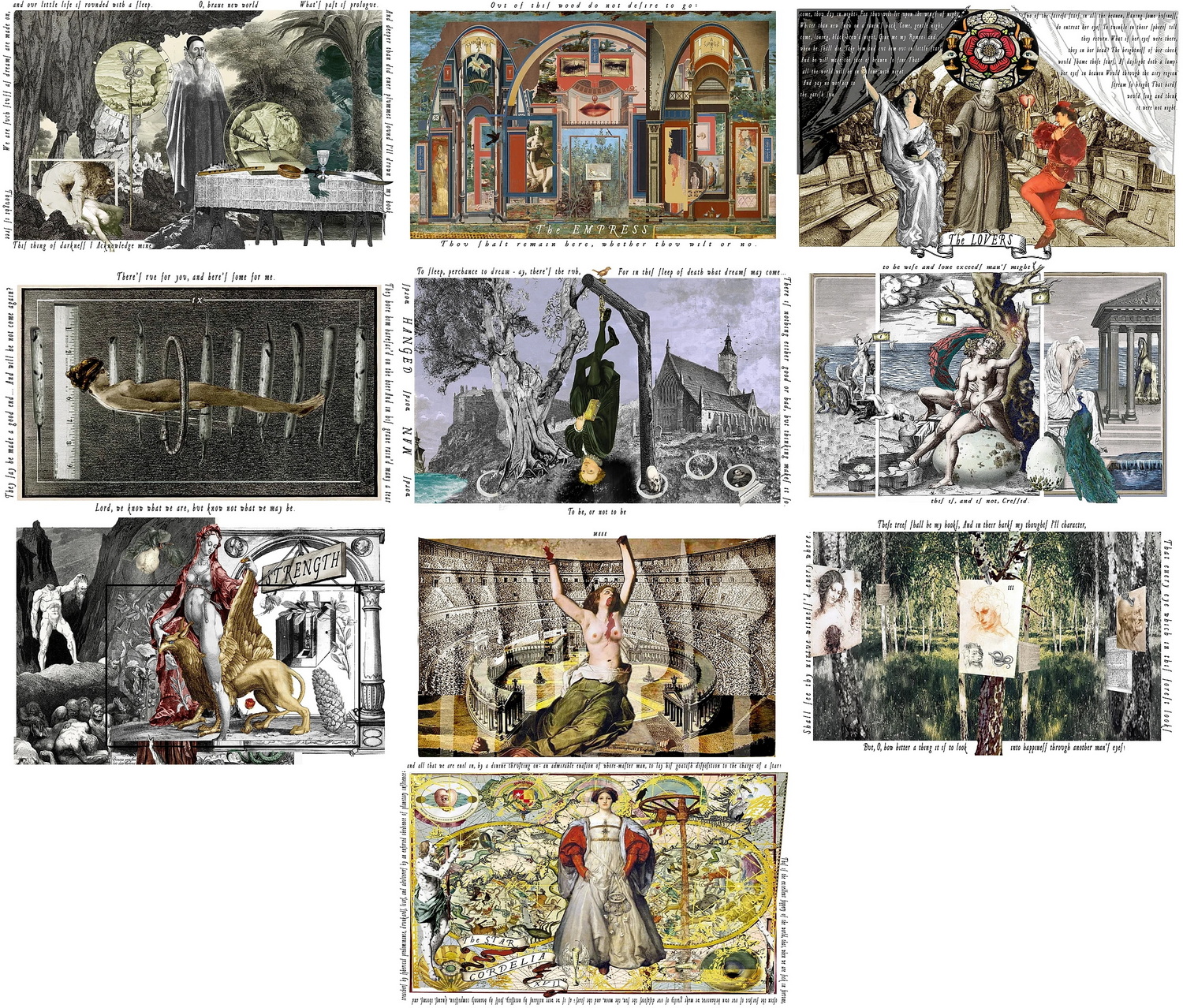 A 78 card tarot deck based on the works of William Shakespeare. Created using source art from the Renaissance. The cards are high quality [S30 professional standard], large format [ 3.5" x 5.75"], and the cards come in a custom 2-piece rigid box.