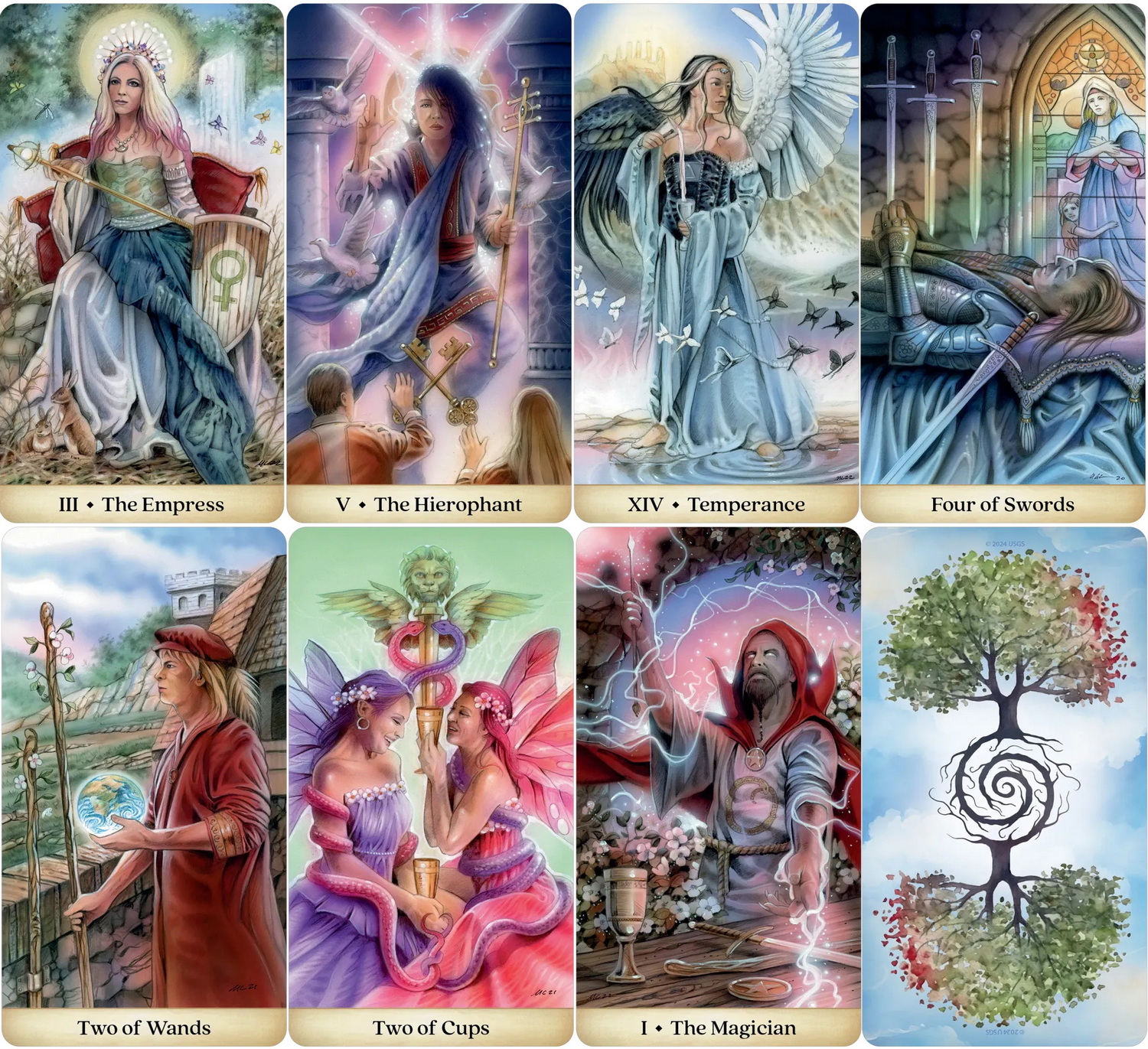 The Calandra Tarot deck, created by fantasy artist Michael Calandra, is a mesmerizing work of luminous imagery inspired by traditional tarot. Calandra's hand-drawn art showcases depth, texture, and a palette of soft, glowing colors, resulting in a tarot deck that is both visually stunning and spiritually evocative. Each card was intricately designed by the artist using traditional mediums of airbrush, acrylic paint, and colored pencils. The 80-card deck includes two additional cards that explore the duality of life: As Above and So Below. The 120-page guidebook provides keywords and meanings, as well as instructions for reading the cards, including a custom Self-Awareness Exploration Spread.