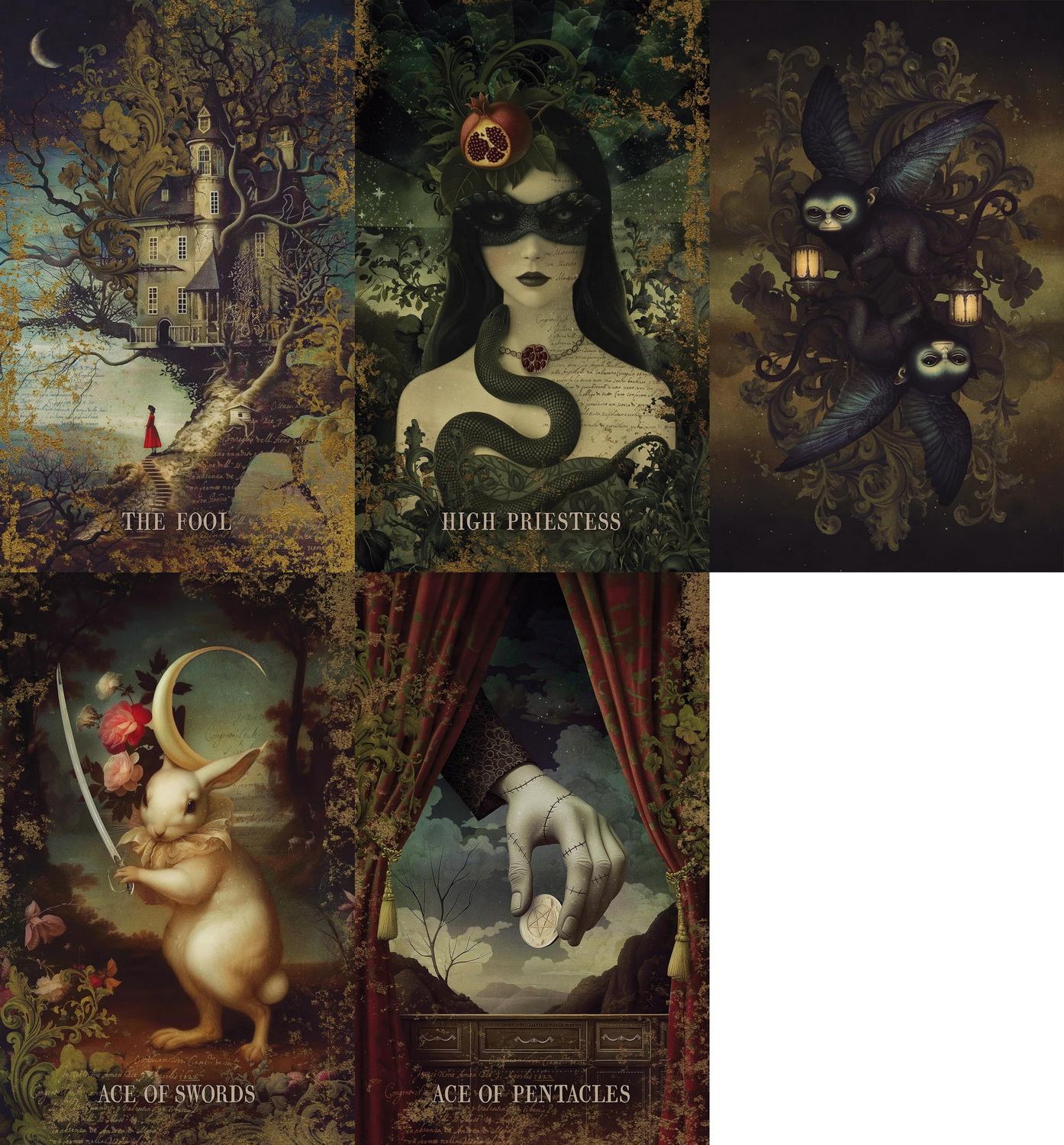 Welcome to the eerily familiar world of the Grim Tales Tarot where images and symbols from fairytales magically mingle with undercurrents of occult secrets that lurk behind cottage doors in dark forests. Reading with this Rider-Waite-Smith-style deck allows you to create your own dark fairytale, full of magical knowledge to guide your life path. Use your intuition to listen to the characters as they whisper messages about your modern day "once upon a time" from the shadows.