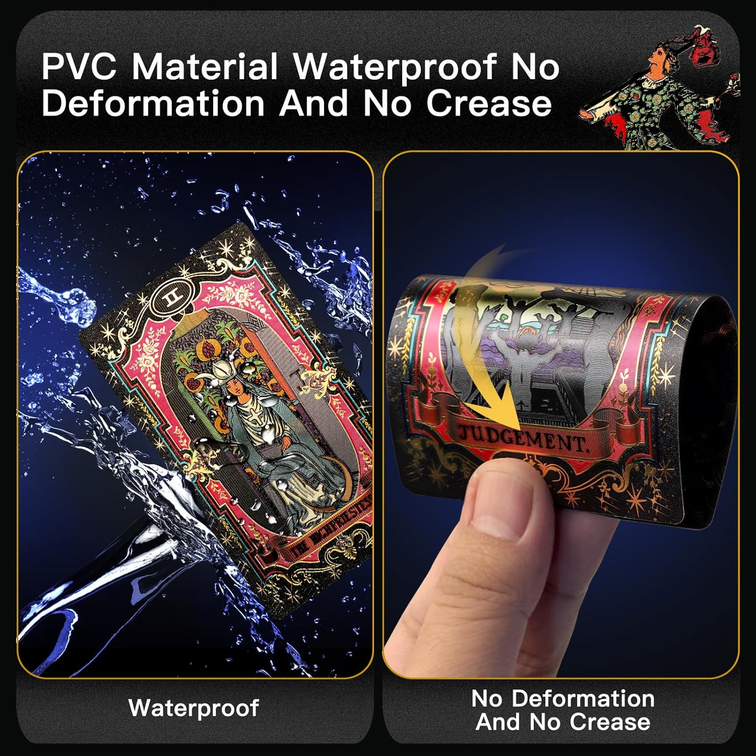 貨品介紹: 這副塔羅牌為經典的 78 張萊德偉特塔羅(Rider Waite Tarot),牌面設計精緻細膩,是初學者與塔羅愛好者的理想選擇。卡牌採用高品質 PVC 材質製成,具備防水、可清洗與抗變形的特性,日常使用不易產生皺折或損壞,確保長久耐用。塔羅不僅承載數百年歷史,亦是靈性探索、心靈成長與占卜的有力工具,每張卡牌上的符號都蘊含對內心想法、潛意識動機、隱藏恐懼、渴望及個人特質的反映。這套牌同時具有藝術裝飾與實用價值,是送給遊戲愛好者與塔羅迷的完美禮物,尤其適合聖誕節、生日或收藏用途。產品內附中文使用指南,如有需要英文說明書,可於購買後與我們聯繫索取。