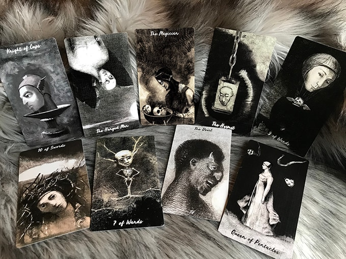 Following the tarot structure of the Rider-Waite-Smith, creator Nitasia Roland has allowed Redon’s imagery to naturally evolve into the Major and Minor Arcana, with an emphasis on its nature as “chimeric”—dreamlike, illusory, transformative.