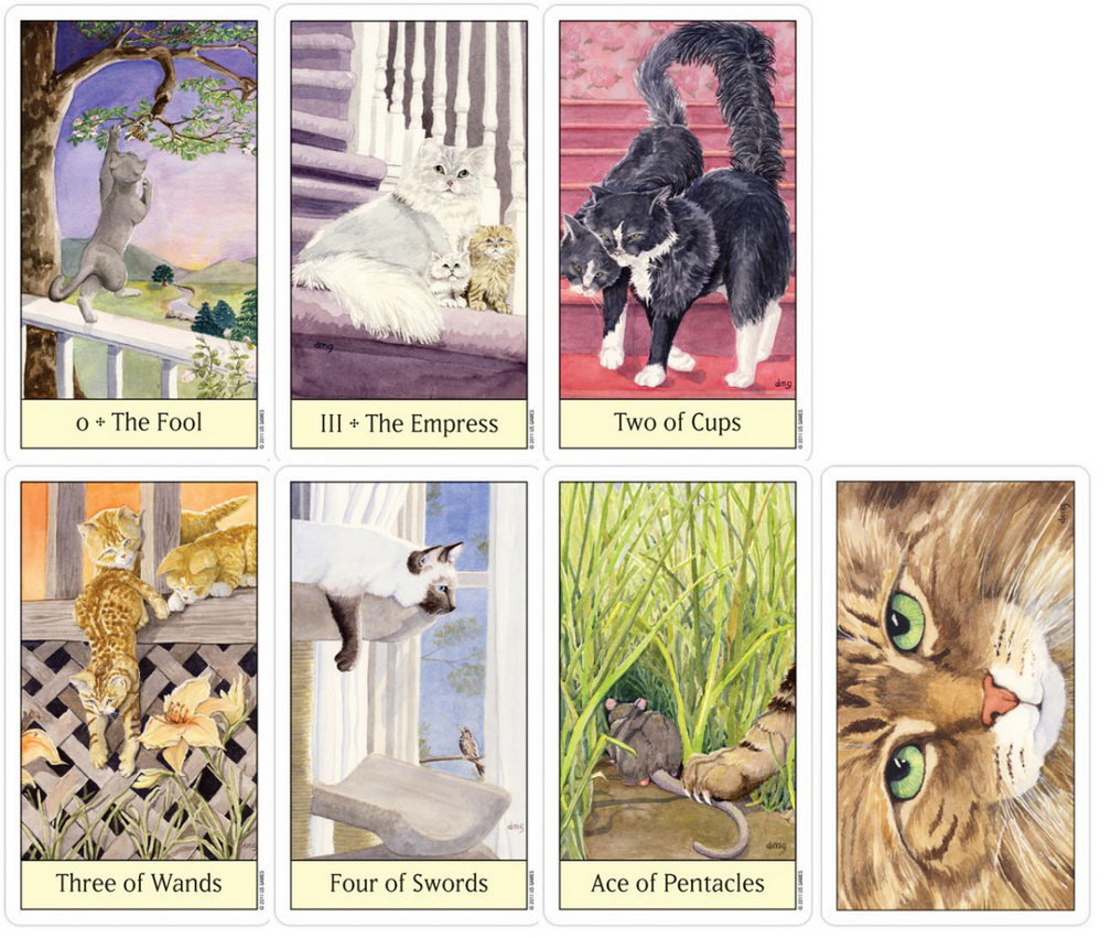 本產品需要付全數訂金訂貨,一般需時約 3-4 星期到貨。Cats are pleasing to the eye, complex in their behaviors, and mysterious in their moods, providing a "purrfect" model for a visually evocative medium like the tarot. Every card in Cat’s Eye Tarot tells a story, illustrated from a feline point of view. Let these cats guide you as you use the tarot to learn about yourself and your cat. The card meanings and numbering follow Rider-Waite interpretations, with reptiles, fish, birds, and mice replacing the usual suit symbols. Even the newcomer to tarot will be able to relate to these delightful images of cats and learn valuable lessons from them.