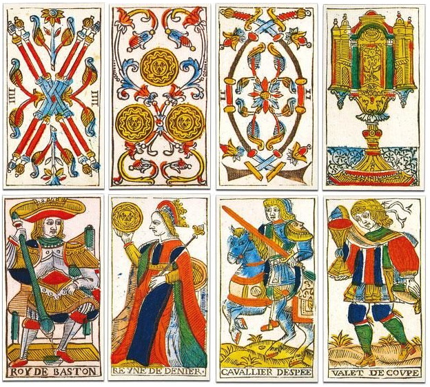 Limited edition of 3000 copies of the finest known Swiss copy of the Tarot known as "de Marseille", produced in 1751 by Claude Burdel, Master cartier and engraver in Friborg, Switzerland, characterized by additions typical of Swiss productions of this period. Facsimile of a copy kept at the MuCEM - Museum of Civilizations and the Mediterranean - in Marseille, wrapped in the copy of an original wrapping sheet.