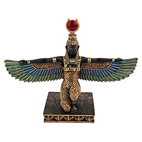 本產品需要付全數訂金訂貨,一般需時約 4-8 星期到貨。A regal depiction of Isis with spread wings. Detailed silvery base with gold and copper red highlights. Hand Painted Resin