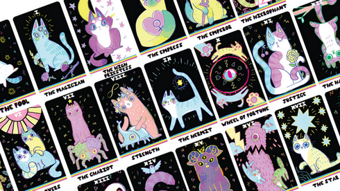- 4 x 6 FULL COLOR Guidebook that includes fun card meanings, spreads, The Weird Cat Zodiac, sketches, AND MORE!