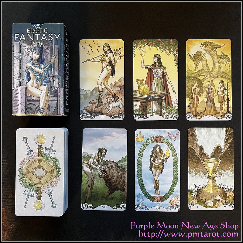 In perfect harmony with traditional tarot symbols, these fantasy cards open a unique window to the energy of the erotic, to the beauty of alluring bodies, and to the inspired fusion of embracing lovers. Erotic Fantasy Tarot presents breathtaking illustrations of a world without inhibitions, where magic and dreams have the power to transform your spirit. As you connect to the passionate, empowering, and playful energies of this deck, you will discover how the mysterious essence of eroticism unlocks the wisdom of your soul. Note: card art contains adult imagery.