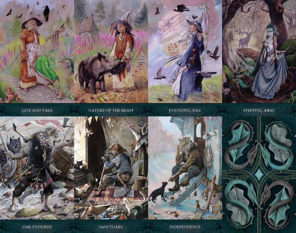 Inspired by Steven Hutton's popular Dark Raven Chronicles Trilogy, Raven's Wand Oracle draws insights from the tale of a mysterious black wand, brave young Kolfinnia, whose fate it is to save witchcraft, and the sage old witch Valonia who counsels that mind creates matter. Other witches you will meet in the Wildwood–coven include Rhia Winsome, who shares her creative energy, Ada Crabbe, the senior gardener, Oceana, and the dragon twins Hethra and Halla. Each member of the coven has important life lessons to offer. Through vivid artwork and heartfelt messages, Raven’s Wand Oracle invites you to explore the profound wisdom of witchcraft.