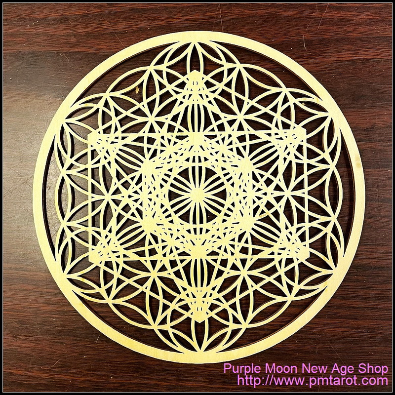 Archangel Metatron's Cube w/ Flower of Life Wooden Plate