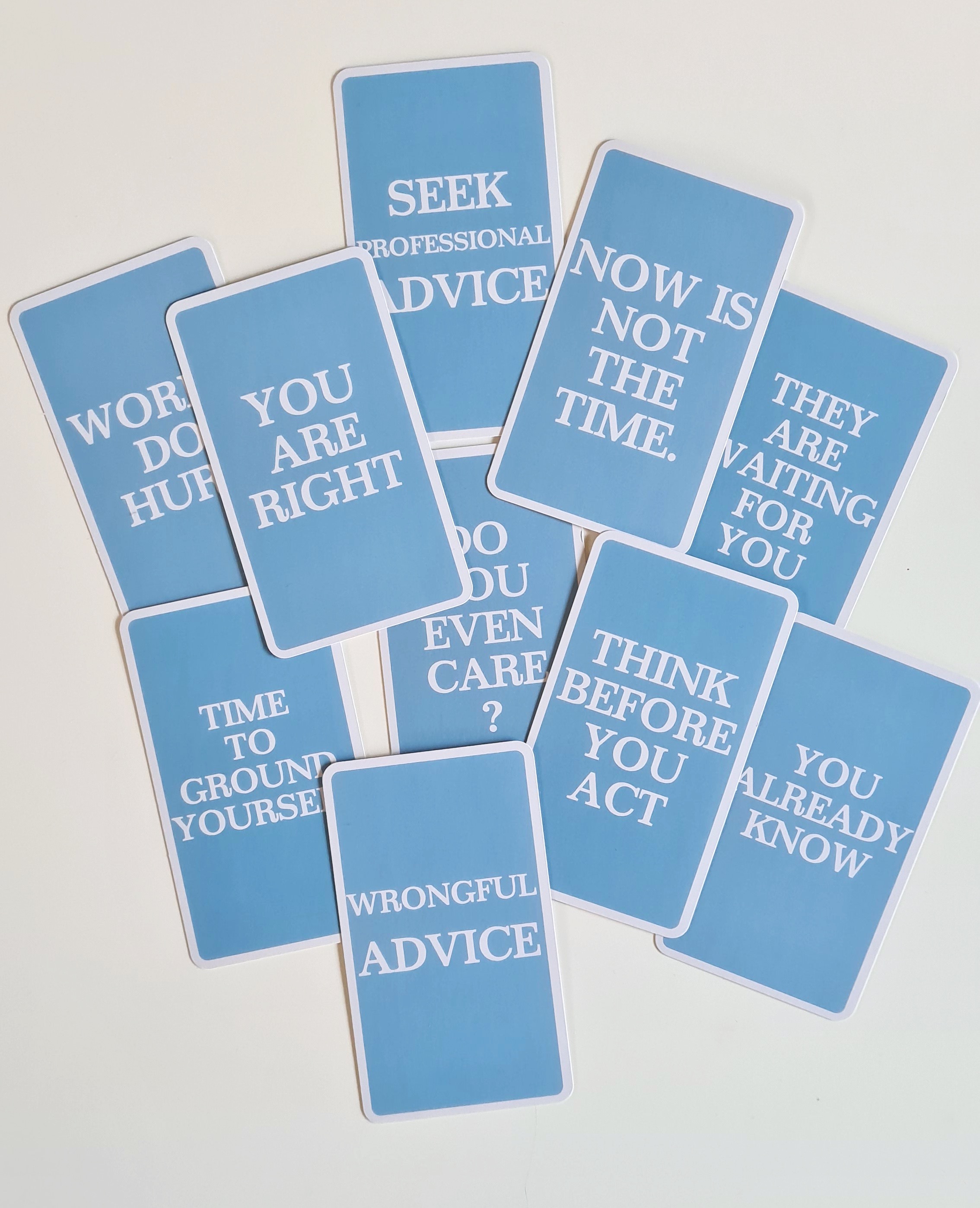 Each Minor Arcana-inspired card is printed on a white background with a number. The card does not reference a specific suit on purpose (i.e. Cups, Wands, Swords or Pentacles) - Allow your intuition and the depth of the words to guide your interpretation of the card. Your interpretation of the card will vary as you become familiar with your deck...
