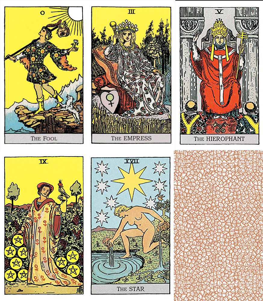 Colors and backside of the cards according to the first edition from 1909. The frontsides of the cards offer the same beautiful reprint of the colors of the historic cards as the blue edition. The back of the cards shows the famous brown pebble back that was the very backside of the first printing. This edition consists of a sturdy bottom lid box with a detailed instruction booklet of 96 pages various language editions and in three different card sizes: Deluxe = 99 x 169 mm; English Standard = 70 x 120 mm; English, Spanish, Portuguese & French Pocket = 57 x 89 mm; English, Spanish & Portuguese The cards were drawn in 1909 by Pamela Colman Smith under the direction of Arthur Edward Waite. Smith's vibrant drawings transformed the standard tarot deck. Pamela Colman Smith was born February 16, 1878, in Middlesex, England to American parents, Smith's childhood years were spent between London, New York, and Kingston, Jamaica. During her teens, she traveled throughout England with the theatre company of Ellen Terry and Henry Irving. Thereafter, she began formal art training at Pratt Institute of Brooklyn, graduating in 1897. Around 1903, she joined the Order of the Golden Dawn. In 1909, under the guidance of Arthur Edward Waite, she undertook a series of seventy-eight allegorical paintings described by Waite as a rectified tarot pack. The designs, published in the same year by William Rider and Son, exemplify the mysticism, ritual, imagination, fantasy, and deep emotions of the artist. Arthur Edward Waite was born in America in 1857, raised and educated as a Catholic in England. Beginning at the age of 21, Waite pursued research and writing on psychical and esoteric matters. Soon after joining the Hermetic Order of the Golden Dawn, he became the Grand Master, and redirected the focus of the order from magic to mysticism. The Golden Order, whose structural hierarchy was based on the Kabbalah, is considered the single greatest 20th century influence on the occult. Waite was a prolific author of occult texts, works on the Holy Grail, and the body of mystical knowledge, which comprises the basis of modern Tarot.