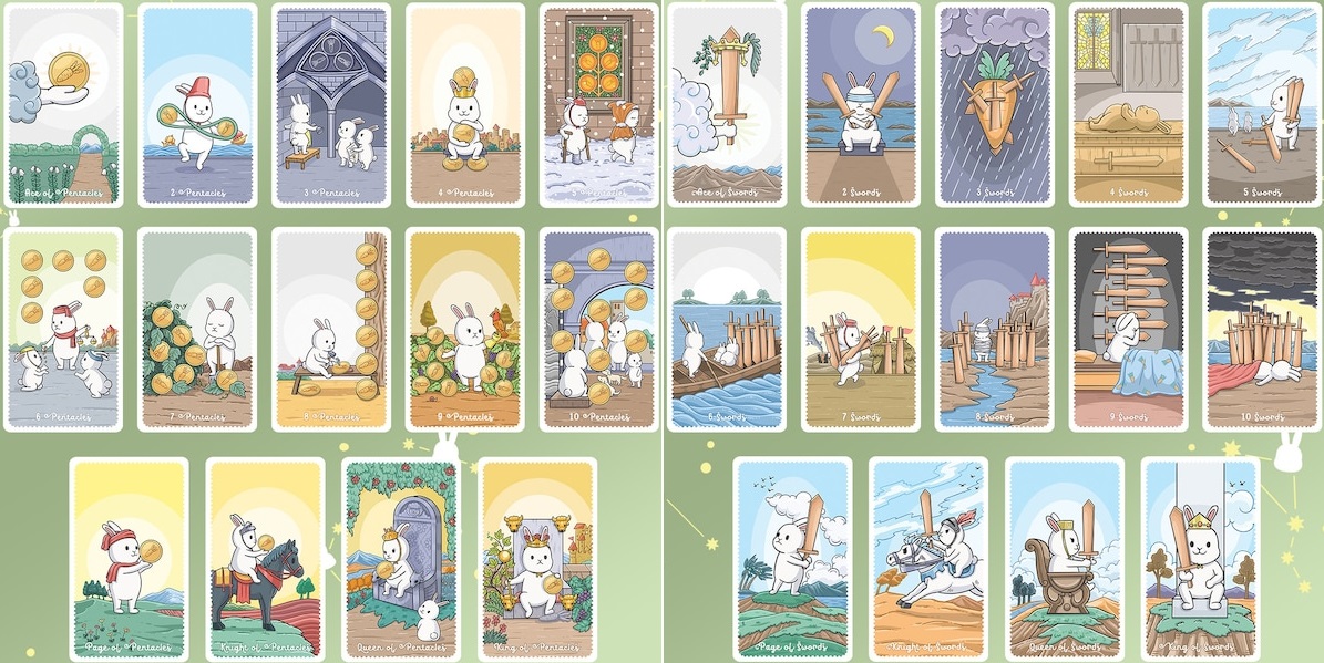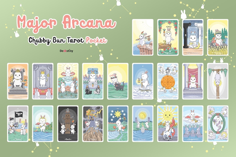 The Chubby Bun Tarot is based on the traditional Rider-Waite Tarot deck. Staring White Chubby Bunny and his adorable friends. Coloring by Magical Pastel. The arts will make you feel easy on it. He is so friendly, Kid lover, and harmless. Everyone can be his friend.