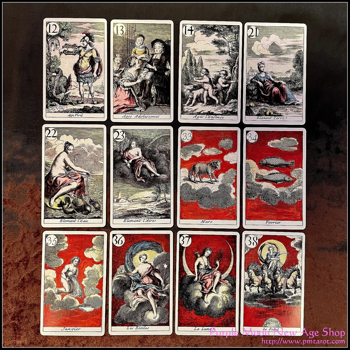 這套牌為 97 張的 Minchiate 塔羅體系,大牌結構清晰,由線條細膩、藝術水準高超的精美畫作組成。