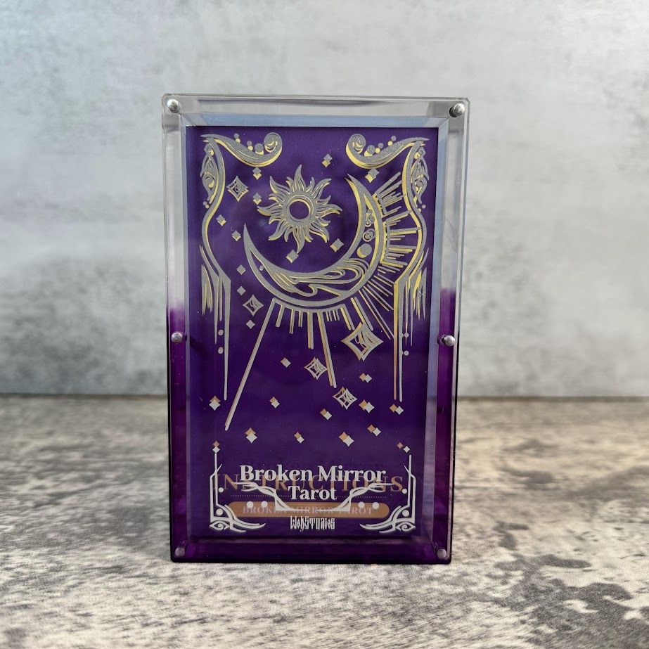 破碎鏡像-水銀鏡超限版塔羅牌,首次採用光柵卡工藝設計,結合數碼科技與傳統印刷的光柵技術,在第一版破碎鏡像的牌面基礎上,使其在光影角度變換下畫面顯現不1的特殊效果,色彩變幻的畫面切換,呈現出栩栩如生的立體效果,匪夷所思的幻變效果震撼又充滿驚喜。