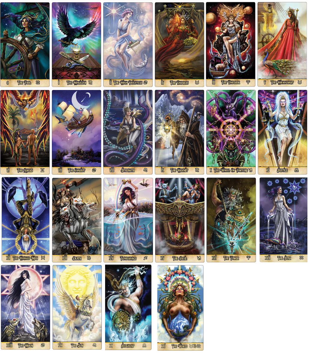 跟隨我們卡牌上的愚者 Mena 的故事,進入這個太空海盜、眾神和女神的神奇世界,她也是我們勇敢的冒險家,即將踏上自我發現之旅。 這 78 張卡片描繪了一個眾神統治的宇宙,太空海盜漫遊,決定他們是否遵守這些規則。 平民生活在這個星系的行星上,把太空海盜的生活拋在腦後。 他們與海賊和神/女神和平相處。 Mena 發現自己正處於分歧的中間,她幫助這個世界實現平衡,並發現自己處於這個過程中。