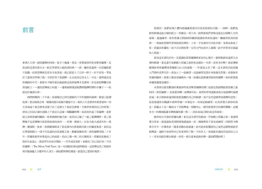 「塔羅不預測未來,也不算命。塔羅會做的,是肯認你的直覺,進而賦予你力量,讓你以最真實的自我,以與目的相符的手段,在人生的道路上前進。」