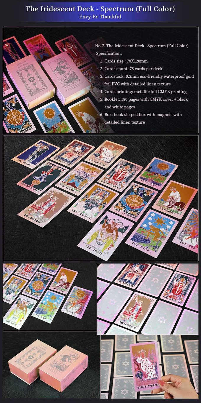 本產品需要付全數訂金訂貨,一般需時約 1-2 星期到貨。350gsm的藝術紙卡,高質感磁鐵翻蓋盒,防水塑料材質,金箔印刷。在畫面上設計出如同金屬材質,讓我們每一次翻牌,都能被這眼前華麗質感所震懾!