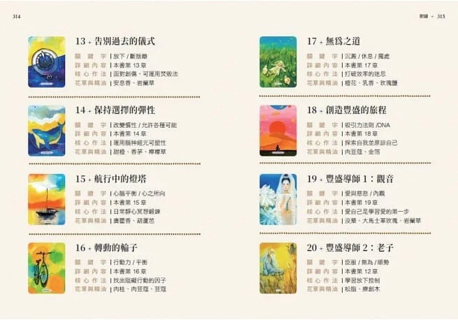 文中加入數個日常可運用的實作練習,以協助大家能獲得更具體的指引,目的均是為了深入淺出、更能貼近我們的生活。這是一本在日常生活就能修煉財富與心靈的魔法書,願每位讀者都能成為自己生命最強大的導師!