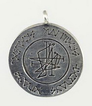 This powerful Arch angel amulet - Michael, Uriel, Gabriel and Raphael, consists of a wide circle exterior, with an Arch Angel spell engraved along the outer edge in a magical script reading "Before me, Behind me, to my right and to my left, I am surrounded by protection," it comes with with a small sheet explaning providing the names of four major Arch Angels as well as the wording with which it is inscribe. To provide healing, protection, power and receive divine message, No chain.