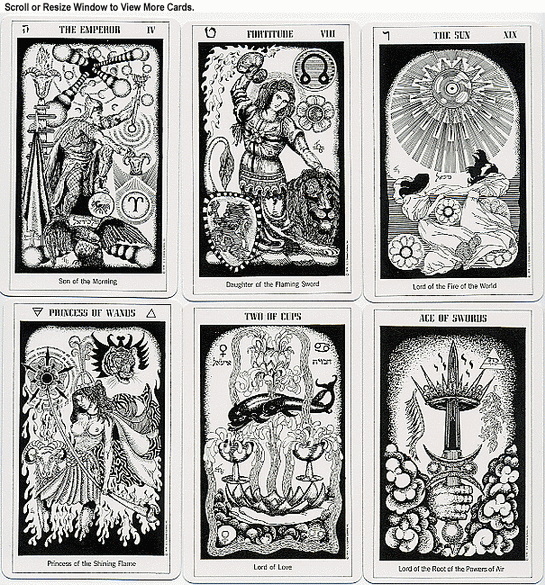 Godfrey Dowson’s subtle black and white designs emphasize the Golden Dawn’s astrological attributes with further sephirotic, angelic, geomantic, numerical, and kabbalistic elements. All 78 cards feature an exquisite level of detail that highlights the powerful symbolism.