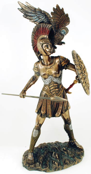 This item is required advance payment to order and estimate arrived in 4-8 weeks.This beautiful statue portrays Athena, the goddess of wisdom and war, as though she were sculpted of bronze, armored as a hoplite warrior with the owl of wisdom landing upon her shoulder.