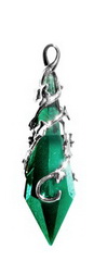 Hedera Helix, latin for Ivy, is entwined around an ivy green faceted crystal giving protection "for faithfulness and good friendships".