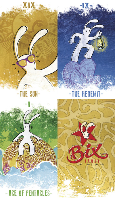 Bix the Rabbit is the extraordinary creation of the extraordinary artist Pierluigi Balducci. Whimsy, fun, simplicity, and irony are the qualities that make up this imaginative character, and they are qualities that make Bix a perfect fit for a very unique tarot deck. Bix Tarot is a powerful reading deck that opens new perspectives with the stories and layers of meaning that greet the reader with each turn of the card. Once you start working with the magic of Bix, you won't see the world the same way again.