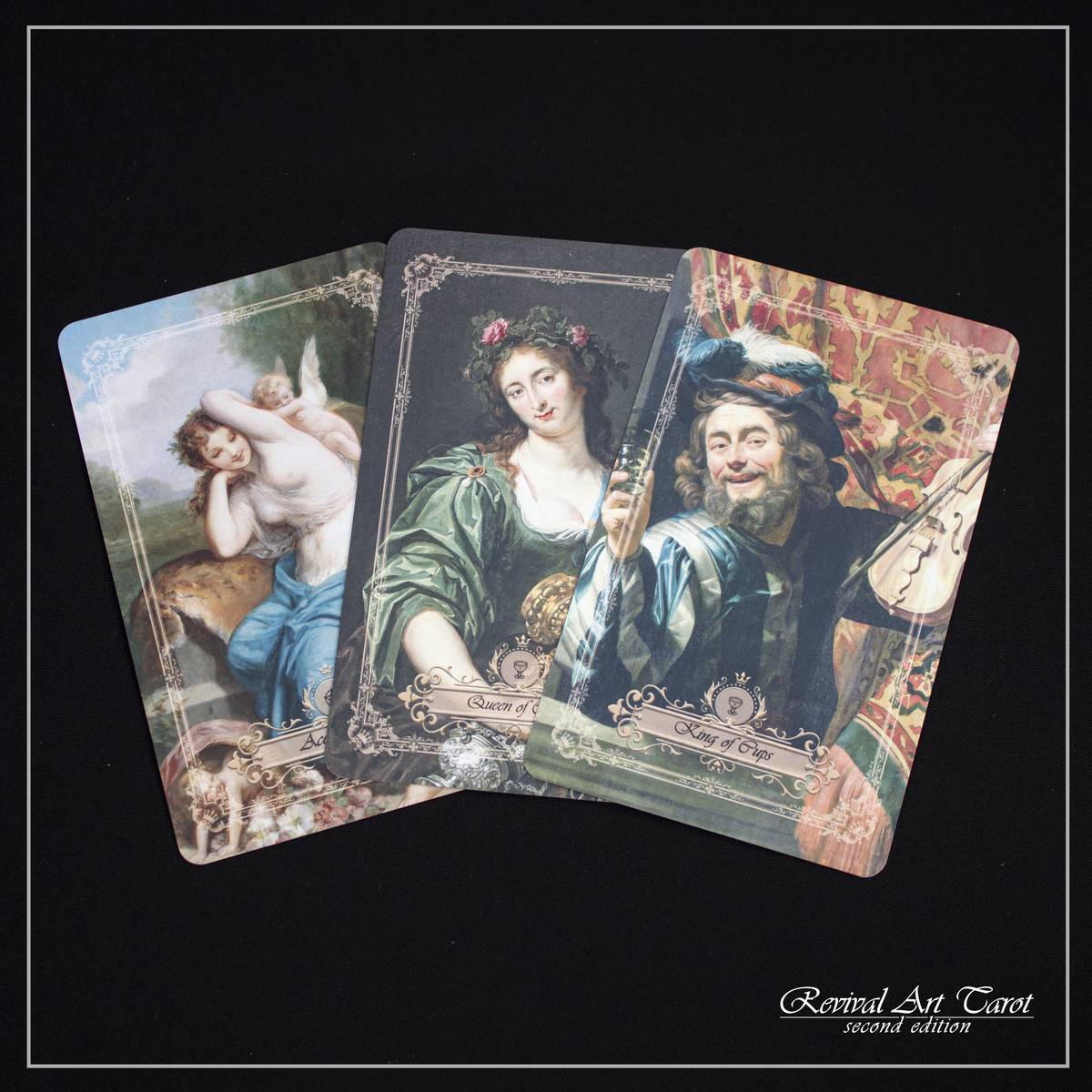 The “Revival Art Tarot Second edition” deck with fascinating plots of famous artists accurately conveys a rich stream of feelings. At a conscious or unconscious level, you will have to feel the energy that was laid during the creation of this work. The power and emotions that were implemented during its creation will be your helpers when working with this deck. You can determine the potential of this deck at the first touch.