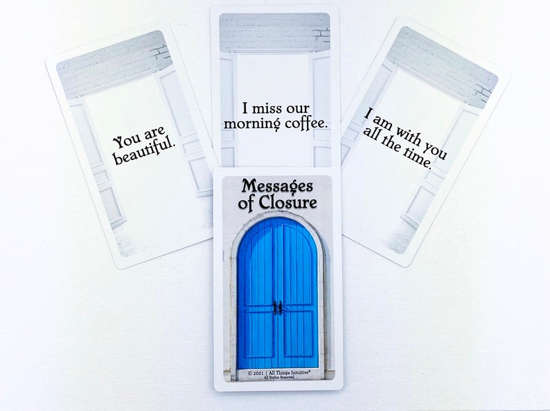 Need a message from a departed loved one? Messages of Closure © is a 54-card oracle deck created for those who have unfinished business with someone who has left or has passed away. The person might have been a spouse or significant other, a parent or grandparent, a friend, or anyone. This oracle card deck can help provide the answers you seek, especially if the relationship was difficult.