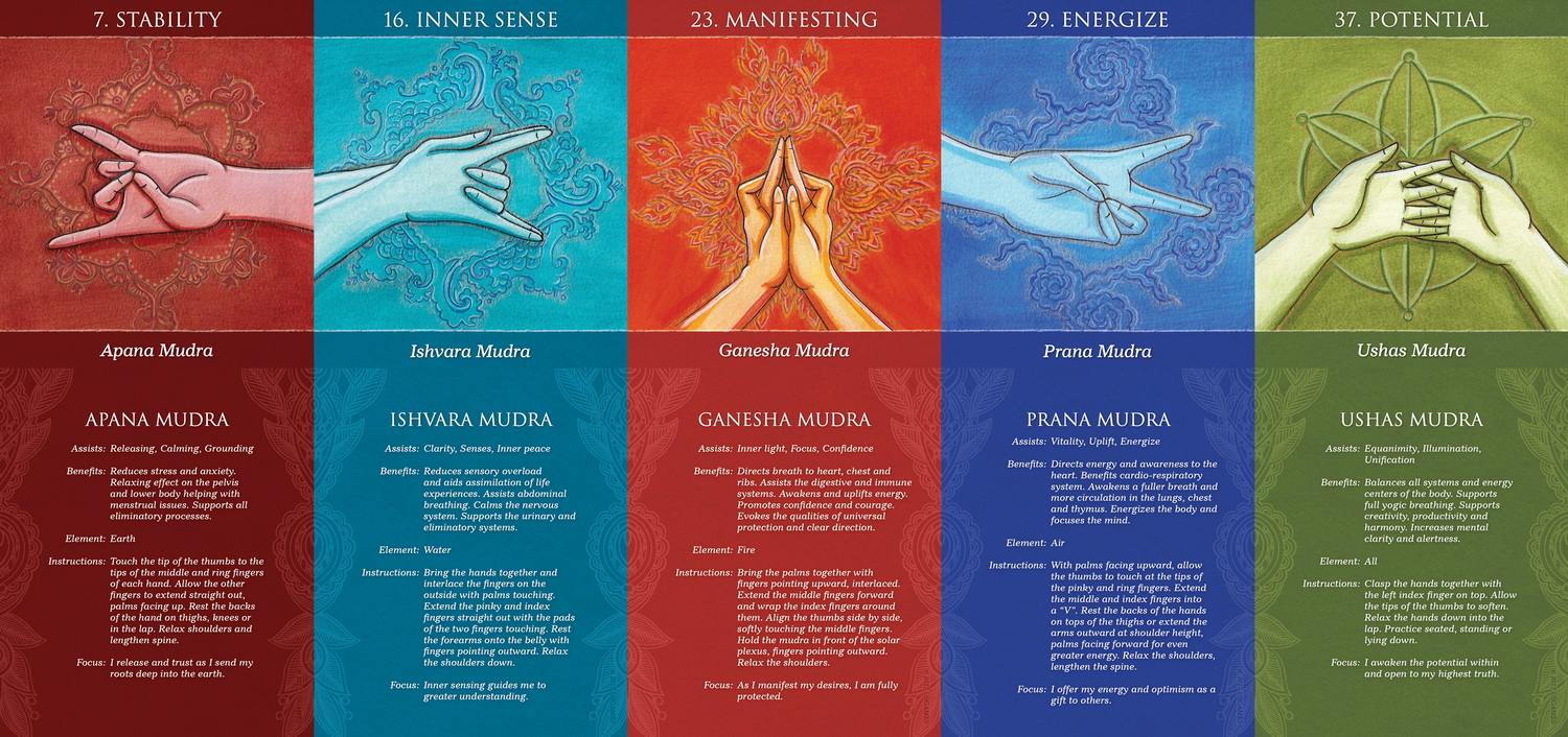 This item is required advance payment to order and estimate arrived in 3-4 weeks.This special set of 40 vibrant cards illustrates 35 yoga mudras and 5 elements. The mudra poses for this deck were specifically chosen to awaken and activate the energy of the five elements within us: Earth, Water, Fire, Air, and Space. The 124-page instructional guidebook, with full-color illustrations, explores the many benefits these mudras deliver for health and well-being. For each color-coded mudra there are instructions, practices and guided meditations. This deck can also be used in combination with Mudras for Awakening the Energy Body.