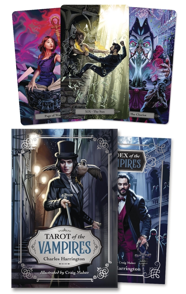 This thrilling deck resurrects vampire archetypes for a new age. These children of the night are modern, nuanced, and deadly creatures who will inspire you to unearth forgotten treasures within yourself. Craig Maher's illustrations explore themes of power, conflict, romance, and adventure. Woven throughout the cards is the eternal human story told through the eyes of vampires, and the companion book by Charles Harrington reveals how their journey gives you new insights into the cards. This Rider-Waite-Smith-based deck opens your eyes to the wonders of life, death, and what it's like to move through the world as an outsider.