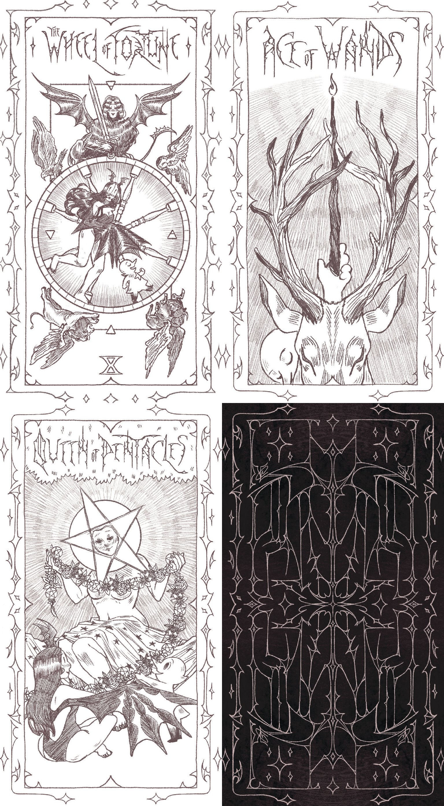 This Tarot tells the story of Vespertiliu, the half-human-half-bat protagonist who sets off for an amazing adventure with Macigian, a little sorceress who will guide her along the magical journey through the Arcana. This exclusive narrative deck is the latest addition to the Horizons line of Lo Scarabeo, offering new, stunning black-and-white art with an original pencil-style linework, and a reading experience in every sense of the term.