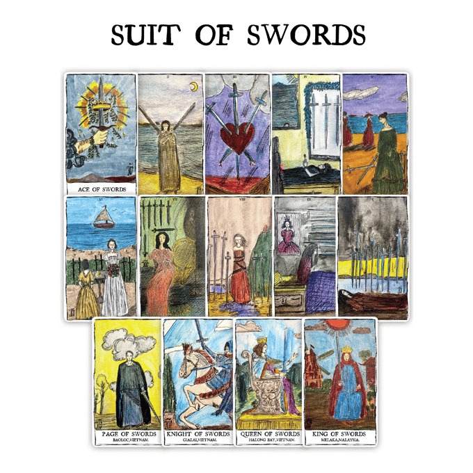 Quen Tarot being his sixth creation. Going beyond the classic RWS inspirations, Khanh weaves both tangible experiences and imaginative tales to create the enchanting allure of the Quen deck.
