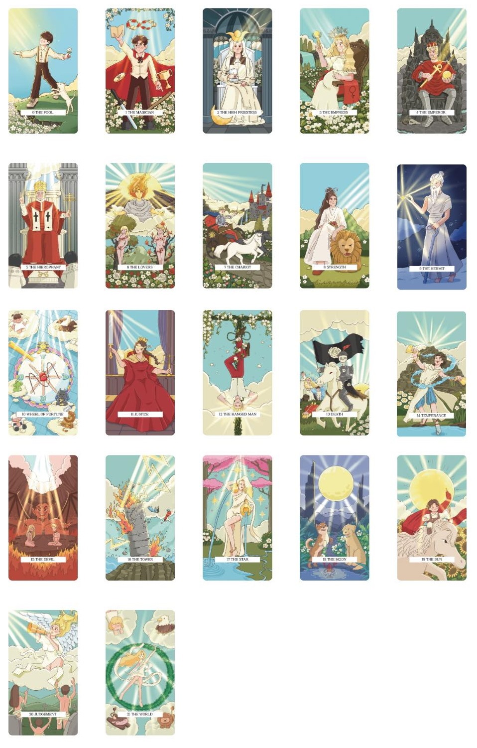 Imagine the Star card as a mischievous cloud winking at you, promising a night sparkling with possibilities. Or the Lovers as two fluffy cloud creatures cuddling under a rainbow, hinting at a day filled with connection. Even the trickier cards like Death become playful – a fluffy cloud shapeshifter shedding its old form, whispering about exciting transformations.
