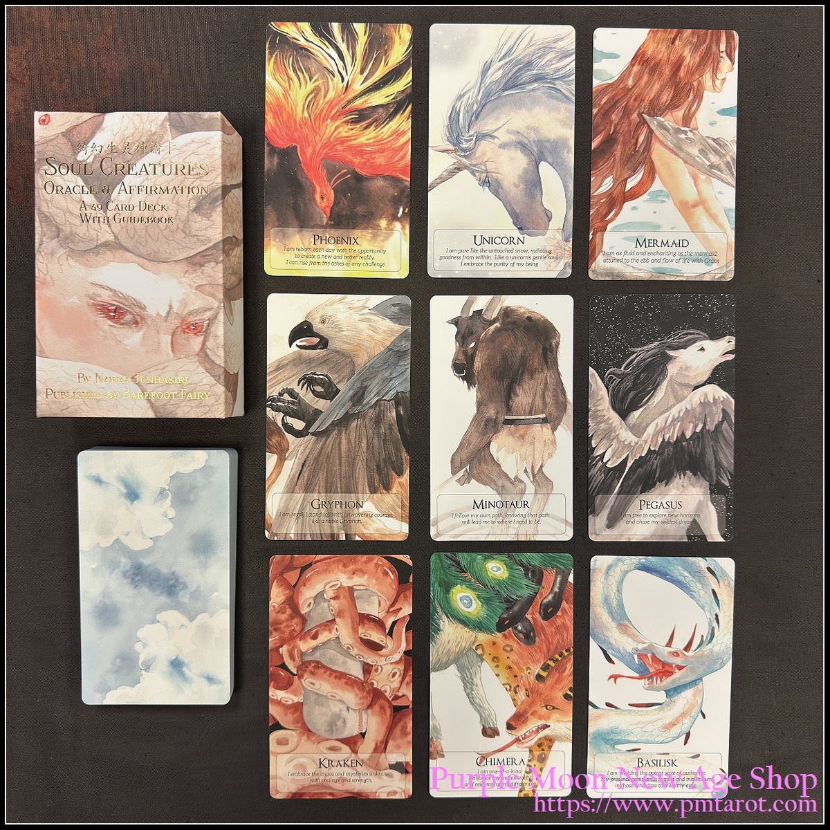 Step into a world of enchantment with the Soul Creatures Oracle, an intuitive and magical 48-card deck designed to connect with the deepest parts of your heart and soul. Each card, lovingly illustrated in a watercolor style, showcases a mythical creature imbued with qualities such as courage, purity, and transformation. This visually stunning and spiritually profound deck weaves a tapestry of empowerment, reflection, and mystical guidance, inviting you to embark on a journey of personal growth and self-discovery.