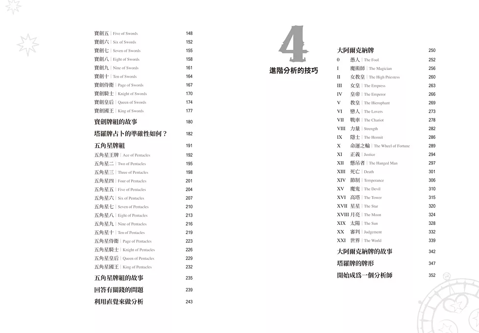 塔羅牌的起源至今依舊是謎,但是塔羅牌非凡的準確性已經吸引了眾多的追隨者,因為它幫助我們從身體、心智、情感與精神層面來解釋生命中所遇到的變化。塔羅牌不只被用來當作預測未來的方法,它也能協助人們作抉擇。藉由闡釋塔羅牌中所蘊含的智慧,這本書可以幫你更加了解自己與世界。